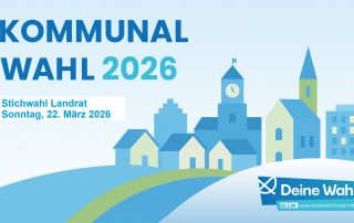 Stichwahl der Landrätin oder des Landrats am Sonntag, 22.03.2026 Gallerie Stichwahl der Landrätin oder des Landrats am Sonntag, 22.03.2026 Aktuelles Stichwahl der Landrätin oder des Landrats am Sonntag, 22.03.2026 Gemeinde Kranzberg2026-03-16T12:03:05+01:0016. März 2026|Aktuelles| Weiterlesen