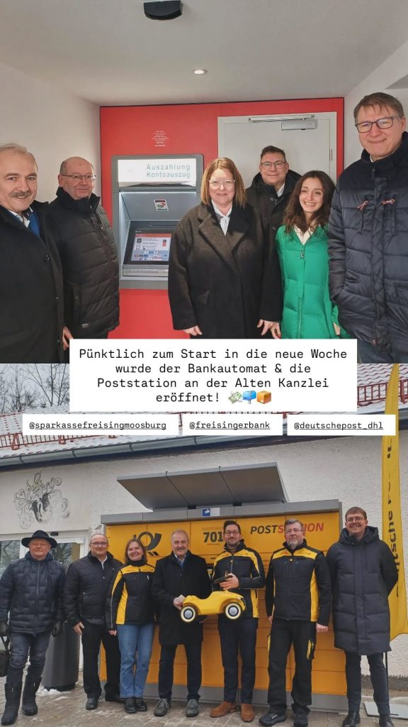 Bild unten: v.l. Zweiter Bürgermeister Anton Hierhager, Herr Joachim Saulich u. Frau Margit Rieger (DHL Group), Erster Bürgermeister Hermann Hammerl, Markus Ehm, Wolfgang Maier u. Mark Schulze (DHL Group)